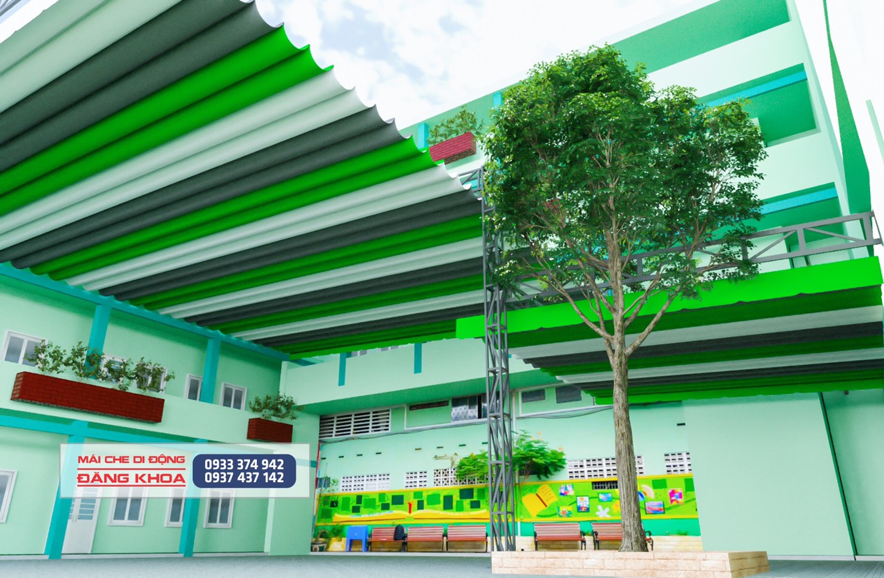 Công ty mái che Đăng Khoa chuyên nhận lắp đặt mái che trường học hoặc mái che bạt xếp di động dành cho sân trường học trên địa bàn TPHCM, Bình Dương, Bình Phước, Biên Hòa Đồng Nai, Vũng Tàu và các tỉnh miền Tây.