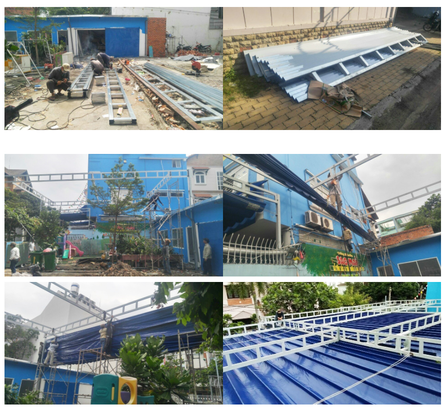 + Khung mái xếp thường được làm từ chất liệu: Sắt sơn tịnh điện, INOX, nhôm.
